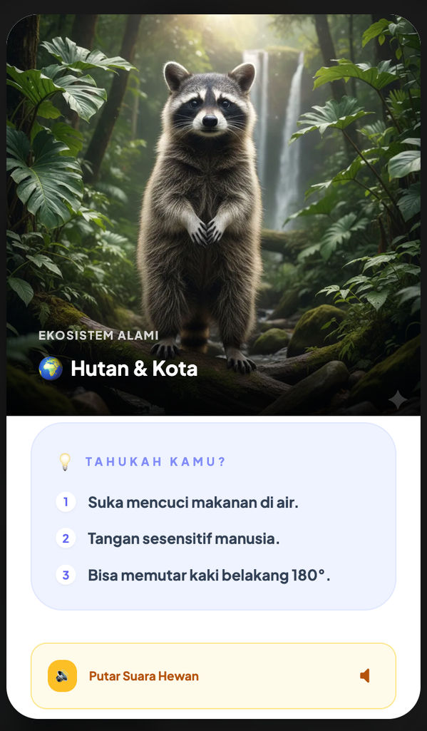 Dengan teknologi Augmented Reality, anak bisa main bareng sama hewan-hewan liar dirumah. Hewan bisa gerak, bersuara, dan terasa nyata.